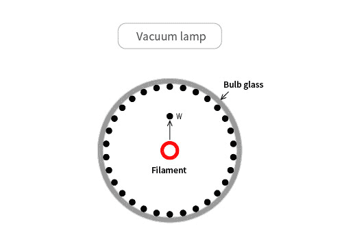 Tungsten atoms (W) vaporized from a filament are deposited on an inside wall of the bulb and cause bulb blackening, so the light intensity of the vacuum lamp will decrease.