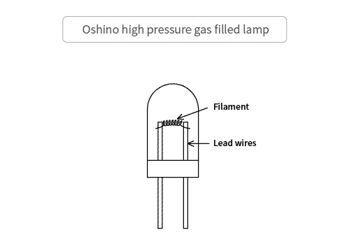 Conventionally, lamps have small exhausting tubes to vacuum and fill rare gas in inside bulb envelopes. Oshino high pressure gas filled lamps have been able to eliminate these exhausting tubes and succeeded in making compact structures and homogeneous light emitting pattern.