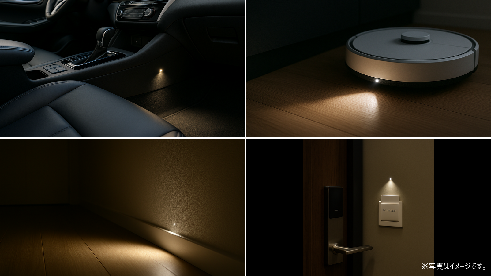 ピンホールライトレンズは、照射口を極限まで小さく、灯体の存在感を消すことで高い隠匿性と設置自由度を実現するために開発したライトガイドです。