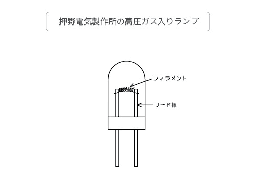 押野電気製作所の高圧ガス入りランプは、この排気管をなくし、コンパクトな構造で、光の照射パターンを均一にすることに成功しました。